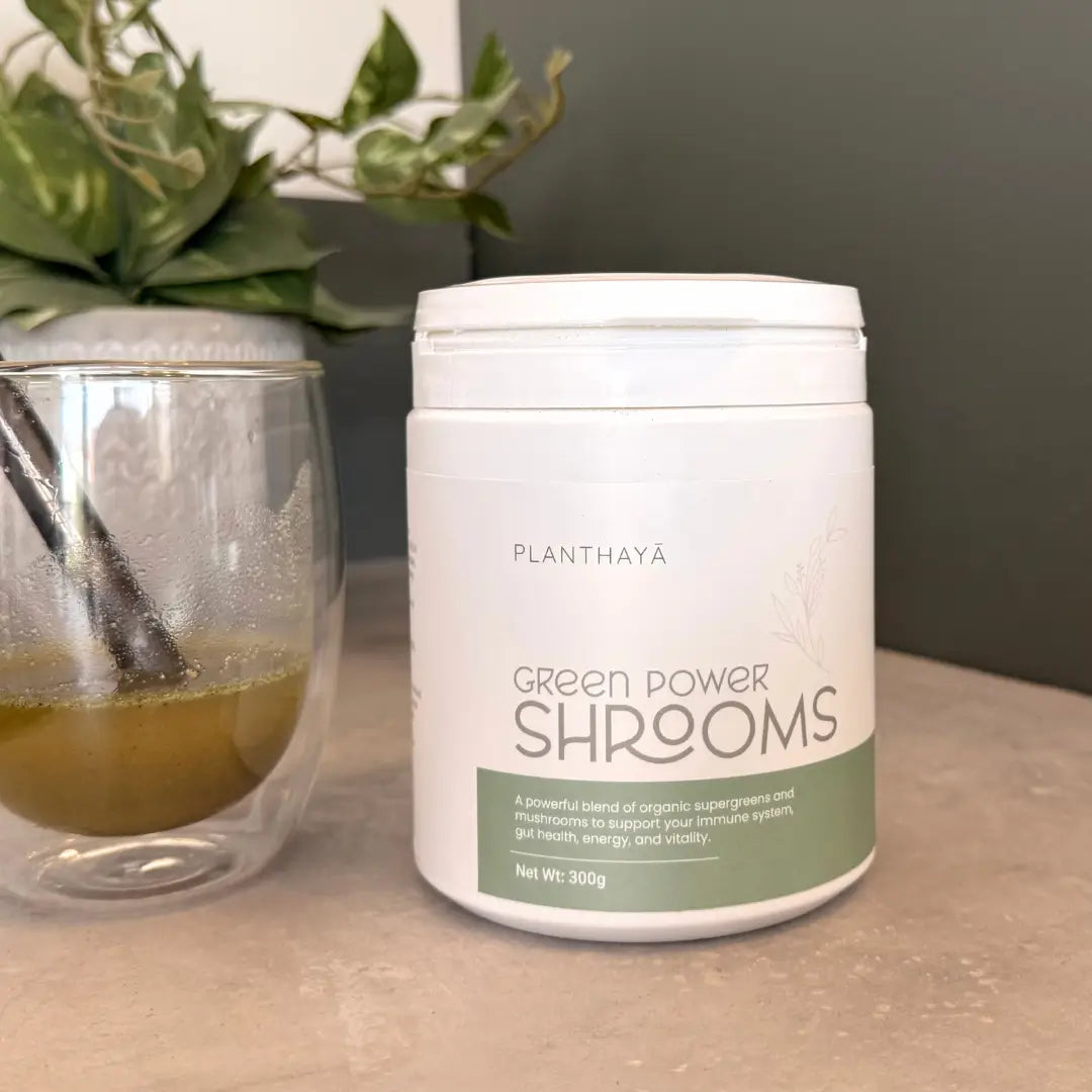 Planthaya’s Green Power Shrooms is a potent blend of 35+ superfoods, greens, and functional mushrooms designed to support gut health, energy, and overall well-being. Packed with bioactive enzymes and adaptogenic mushrooms, this nutrient-dense formula helps you feel your best every day.