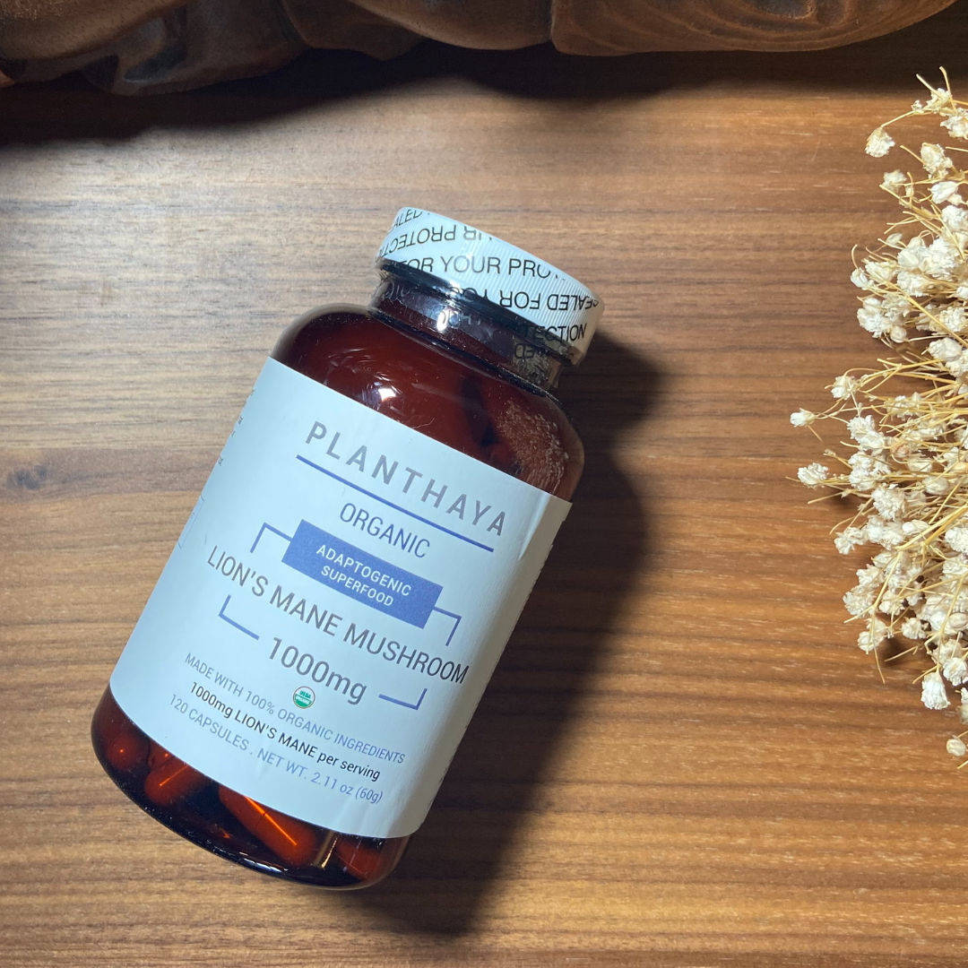 Planthaya Lion's Mane 1000mg, Adaptogenic Capsule Supplement are made to give you the amazing wellbeing benefits of Lion's Mane Mushrooms in a simple capsule that fits easily into your lifestyle. Lion's mane Mushroom's are renowned for their support of cognitive function, promoting a calm and relaxed state. A 1000mg concentrate in a simple to swallow capsule gives you easy access to this miracle Asian mushroom.